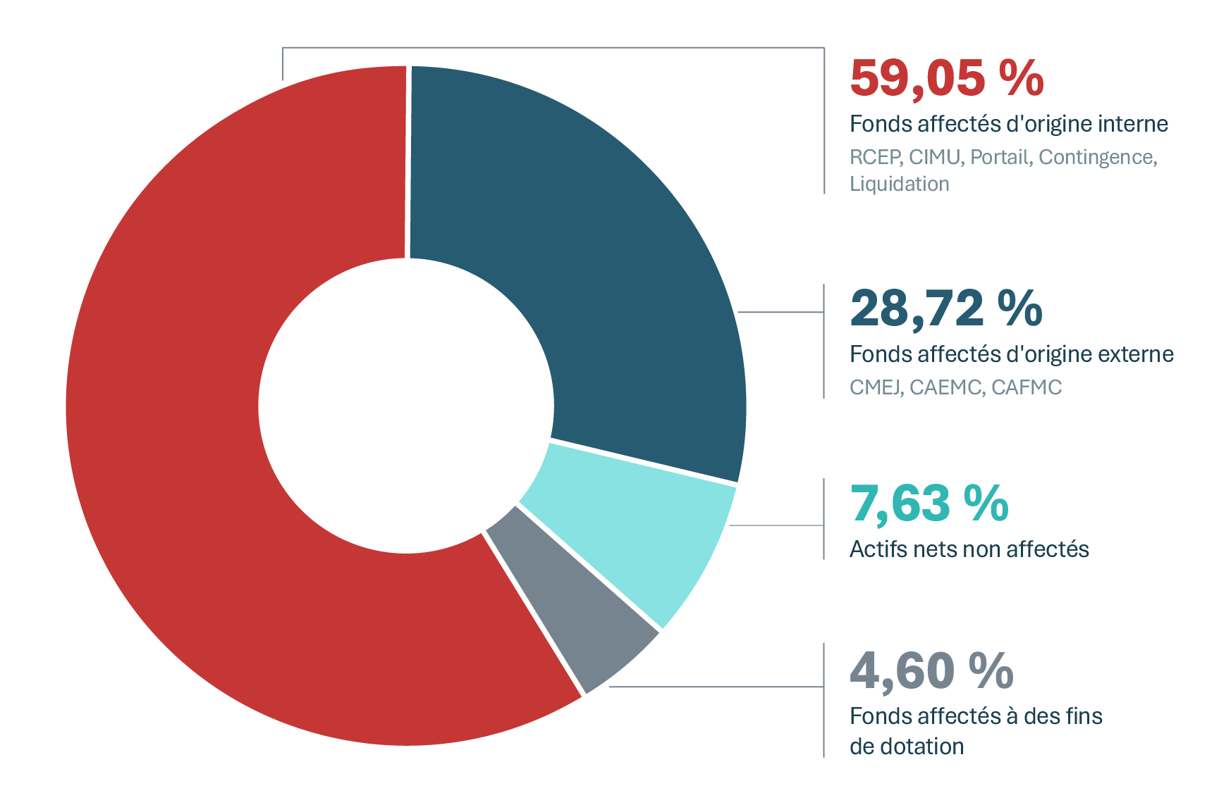 | Fonds affectés d'origine interne : RCEP, CIMU, Portail, Contingence, Liquidation |